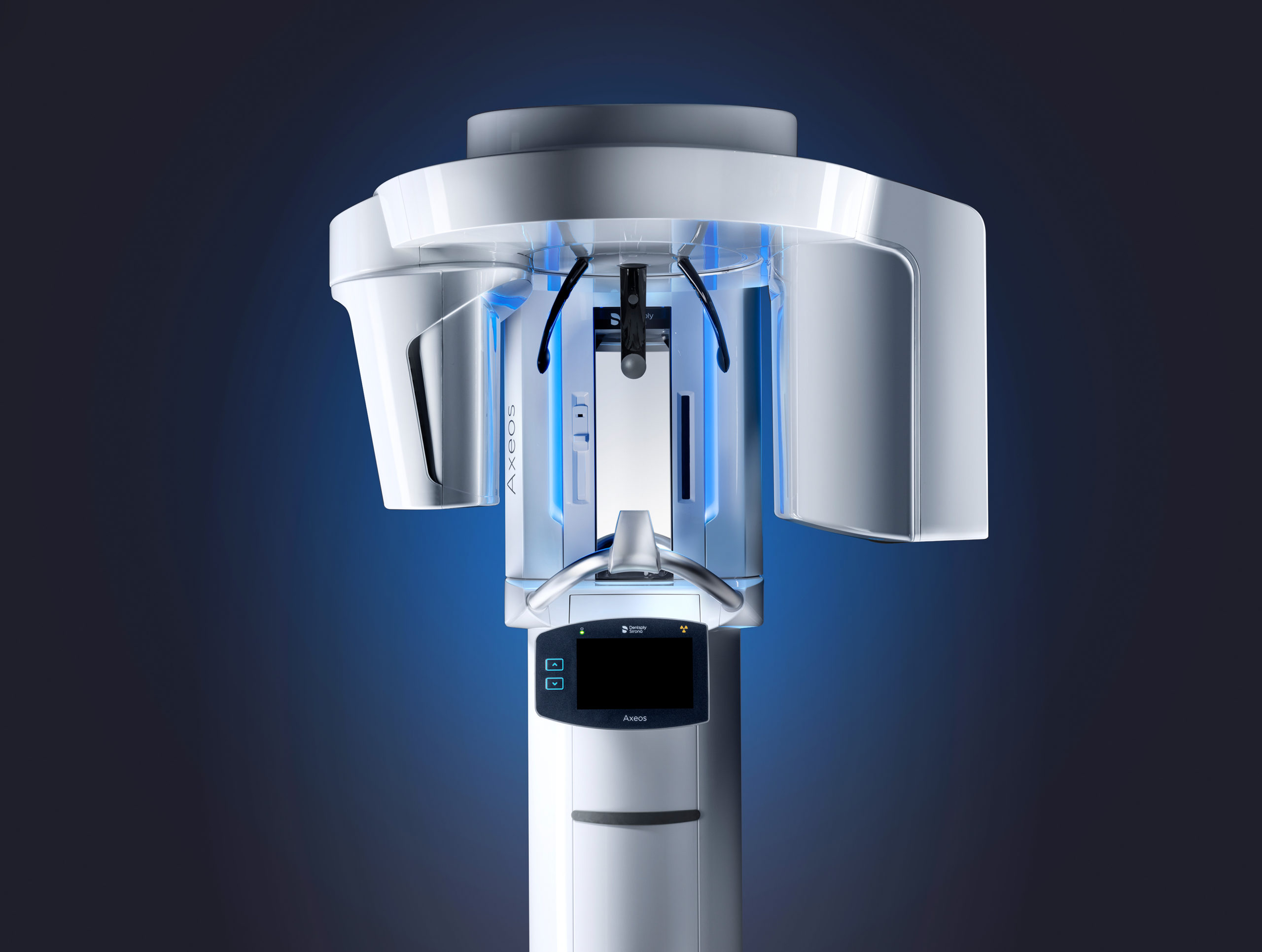 Taking an Axeos scan to understand the biology. The Axeos 3D Imaging System has automatic positioning, so patients no longer need to hold still while scans are taking place. This helps eliminate poor imagery due to unintended movement.