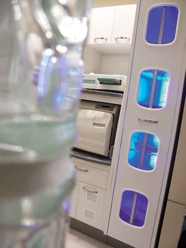 Sleek and ultramodern in style, the office’s trendy mood captures one’s attention immediately. The office may look SoHo New York City, but make no mistake—the ergonomic environment was created and envisioned to allow all team members to deliver the finest dental health care throughout the day with heightened efficiency and productivity.