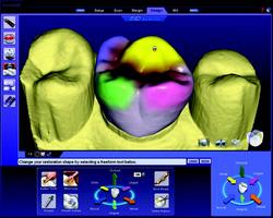 Every ROI is unique to the individual practice but in most scenarios, if examined closely, the time-tested practice of delivering one restoration over two appointments—separated by up to three to four weeks—is a suspect income generator. Consider a situation where a dentist resists raising his/her fees for the next six years—for fear of losing patients. He/she charges $1000 for an all-ceramic indirectly fabricated restoration. If the practice is prepping and delivering a single-unit restoration over two appointments (based upon a 60%–70% overhead and a $150 fabrication fee) the procedure becomes at most a break-even situation after a certain period of time. With the introduction of Chairside CAD/CAM dentistry, the same doctor completing 20 restorations a month in single appointments versus two appointments and with no fabrication fee, lowers overhead and increases the profit/restoration for the practice dramatically—even without raising fees. This assumes material costs remain similar, five years of payment on the equipment, but does not take into account the potential upgrade of some direct restorations to indirect restorations because of a greater confidence in proximal contacts, contours, and occlusal form and function. Chairside CAD/CAM dentistry—the ability to scan, design, mill, and deliver a restoration in one appointment—may make economic sense for a practice such as this (Figure 3).