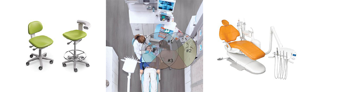 In one survey on occupational health among dental hygienists, musculoskeletal symptoms were commonplace while psychosocial stressors were found to include social isolation, role identity and conflict. Inadequate breaks also impacted ergonomics.7 The design of an ergonomic dental office is an important element in reducing these, and creating a healthy and productive work environment.6 Flow, function, ergonomics and aesthetics are all a part of it.