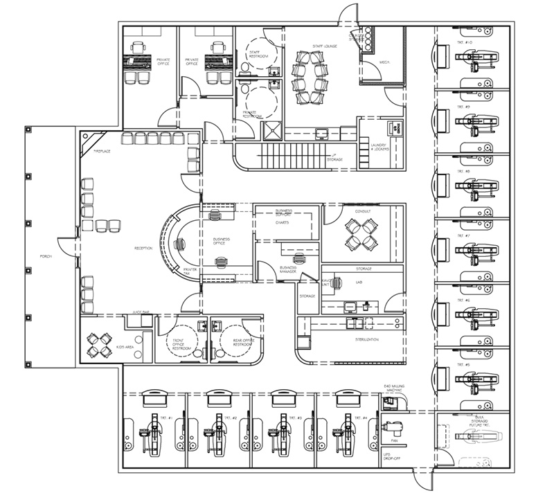 An Eye to the Future–“Toward the end of our time in the old office, we had turned the existing small private office into a pano room…and used another small space as our lab, staff lounge, and my office,” notes Dr. Allen. “We needed much more room. Being a relatively young doctor, I knew I wanted to build for the future. If I was going to take the step of building a new office, I wanted to get it right from the start.