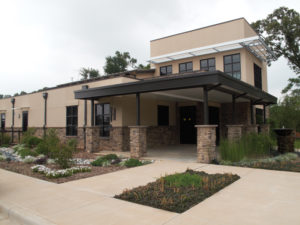 Perfect Form and Function–The new, freestanding office building is also located in Athens, Texas. Its first floor encompasses a 5,000-sq. foot area; the second floor adds 1,500-sq. feet to the overall plan. Crestway Park Dental’s exterior has the modern, organic feel of the Bauhaus-style architecture with strong cubic lines, minimalist sensibility, and a perfect blend of the functional and aesthetic. Mixed elements such as stone and metal, landscaping that adds softness, and a soothing water fountain at the entry give this office strong curb appeal. Inside, the well-thought-out design perspective continues. The use of wood, stone, and water in the reception and waiting areas echo the exterior design motifs and enhance the impact of the office’s clean, contemporary mood. The granite-topped, curved reception desk; warm wood floors; water wall; and an abundance of natural light invite the patient into a relaxed and welcoming space. 3form panels can be found incorporated into walls adjacent to the sterilization and consultation rooms. The translucent panels add decorative flair and allow ambient light to flow between rooms. Dr. Allen’s wife, Brittany, is responsible for all of the professional creative insights into the office’s design.