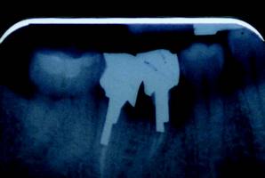 The implant offers an increase of $284 in gross production over the three-unit bridge, which is no big deal. However, you have provided a better and more permanent solution for your patient. Note that this example assumes that no extraction is needed, no site preservation is needed, there is good bone both vertically and horizontally, and adjacent teeth are not in need of restoration–essentially a perfect situation! This rarely presents itself in my practice. So, let’s consider a more realistic example, specifically the case that was presented pictorially in the last article. You may remember the “tired” molar that was failing with a fistula and hemisected roots. In that case, the patient would not entertain any removable solution, so I presented her with these fixed solutions for comparison: