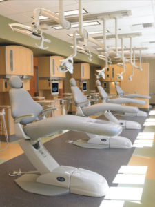 The Center’s floor plan includes a total of 32 treatment areas, which, when full capacity is reached, give the capability to care for a projected 30,000 patients per year. With an ergonomically sound layout to ensure comfortable and stress-free mobility during busy workdays; integrated practice- management systems to aid in both clinical and administrative efficiency; and state-of-the-art equipment choices that offer durability and reliability that are so necessary, this multifaceted/high volume dental healthcare facility is ready to take on a full schedule of patient care. The Center also has an ambulatory surgery center built into its facility.
