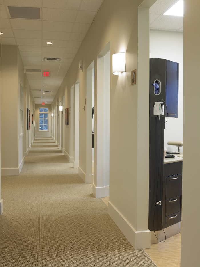 They wanted a new office with: 1) More square footage and a layout that facilitated high-quality care. It also needed to accommodate the future growth to a fourthdoctor. 2) Latest technology to give patients an exceptional experience and make the practice more efficient 3) An upscale yet comfortable interior that matched the level of care given to patients.