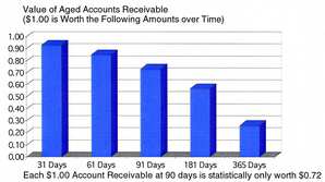 Accounts Receivable trends for any business, from a FORTUNE 500® company to a dental practice, are almost identical. Receivables are like gravity. You can’t resist gravity and you can’t resist receivables falling value over time. The following chart shows the effects of time on receivables.
