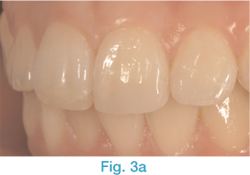During the try-in procedure, it was obvious that the restoration would blend seamlessly with the remaining tooth structure. After glazing, the restorations were prepared with a hydrofluoric acid silanating agent (Monobond-S) and then were bonded using Variolink Veneer resin cement (Ivoclar Vivadent). (Fig. 3a, 3b)