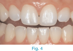 A 21-year-old male was presented requesting veneers to improve his smile. After further examination it was discovered that the only aspect that he wanted to improve was the length of his maxillary laterals. The teeth did not present any type of pathology. Both laterals were slightly in linguoversion and no undercuts were found in the facial aspect. (Fig. 4)