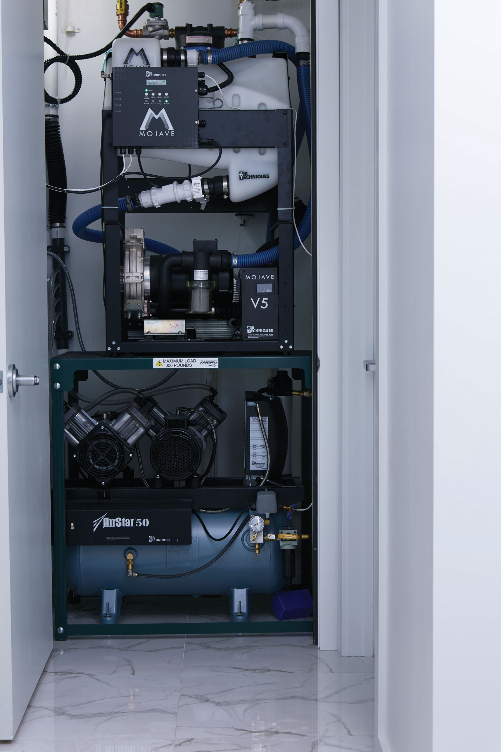 The Air Techniques Mojave V5 dry vacuum and AirStar air compressor deliver reliable, robust power to meet the busy practice’s needs, yet both are energy efficient.