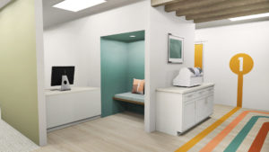 In this zone, design elements are focused on practice efficiency and functionality. Yet the patient experience is still central, and that means promoting safety, privacy, engagement, and ease of care.