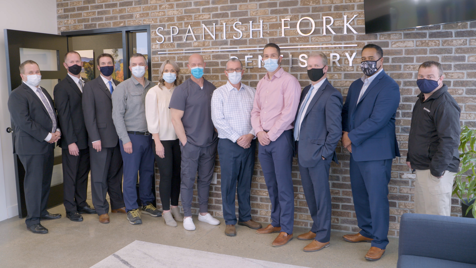 The Springville location re-opened within six weeks of starting construction. Spanish Fork Dentistry opened for business, after two years in the making, on September 1, 2020. With new pandemic restrictions in place, the live grand opening consisted of a small, socially-distant ribbon cutting and celebration with the Springville/Spanish Fork Dentistry team, Henry Schein team members, and A-dec representatives. Mr. Fish and Mr. Cottle created a virtual tour and video-taped an interview with the doctors to share on local TV stations and social media.