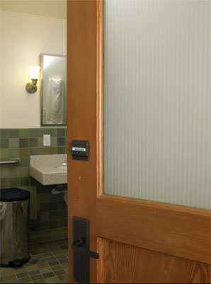 Additional historical architectural elements are scattered throughout the clinic, including beautifully worked iron return-air grates; reclaimed tongue-and-groove fir paneling, which graces the facade of the reception desk; and vintage light fixtures reworked for compact fluorescents. “Our patients are impressed by the ways old objects have found new life in different applications, and we’re proud of the unique and beautiful character that we have created in our space,” remarks Dr. McMillan.