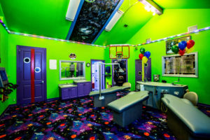 The new office plans were actually drawn by hand by Mr. Kabel, and he was intimately involved with the construction. The layout included three fully outfitted operatories with a fourth set aside for future growth; a year later, it was functional. A pediatric room allowed Dr. Candice to join the practice, and it was a wonderland of fun for patients. The open-bay layout was lined with four pediatric benches, Xbox and PlayStation® video games, an indoor basketball hoop for dunking, and a bright and cheerful space motif.