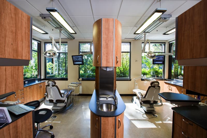LAKE OSWEGO PERIODONTICS & IMPLANT DENTISTRY - LAKE OSWEGO, OR Dr. Matt Hoidal Dr. Matt Hoidal and his staff work each day in a picturesque setting. Yes, it is a dental office, but it overlooks the tranquil beauty of the Willamette River, which is just outside the windows of his practice, Lake Oswego Periodontics & Implant Dentistry. In an affluent suburb of Portland, Oregon, the 2,370-square-foot space is an inviting and modern office with a Northwest style that ties into the history of the area. Rustic design elements complement the state-of-the-art technology, establishing a comfortable blend of contrasts. The earthy color palette creates a warm environment, but tucked within that