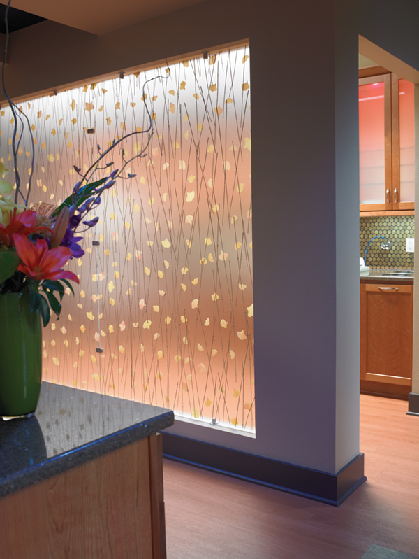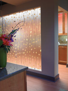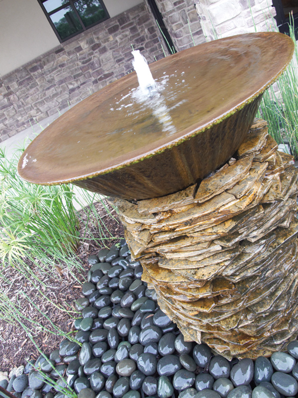 Perfect Form and Function–The new, freestanding office building is also located in Athens, Texas. Its first floor encompasses a 5,000-sq. foot area; the second floor adds 1,500-sq. feet to the overall plan. Crestway Park Dental’s exterior has the modern, organic feel of the Bauhaus-style architecture with strong cubic lines, minimalist sensibility, and a perfect blend of the functional and aesthetic. Mixed elements such as stone and metal, landscaping that adds softness, and a soothing water fountain at the entry give this office strong curb appeal. Inside, the well-thought-out design perspective continues. The use of wood, stone, and water in the reception and waiting areas echo the exterior design motifs and enhance the impact of the office’s clean, contemporary mood. The granite-topped, curved reception desk; warm wood floors; water wall; and an abundance of natural light invite the patient into a relaxed and welcoming space. 3form panels can be found incorporated into walls adjacent to the sterilization and consultation rooms. The translucent panels add decorative flair and allow ambient light to flow between rooms. Dr. Allen’s wife, Brittany, is responsible for all of the professional creative insights into the office’s design.