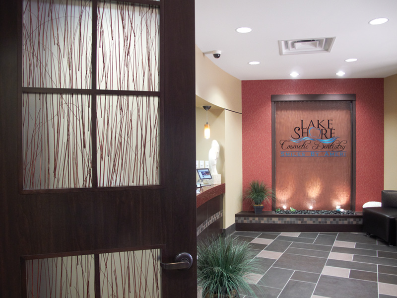 The office design perfectly captures the fresh and simple elements of contemporary style. At the entrance, an 8-foot water feature embedded with the practice’s logo creates instant impact. Twenty-foot ceilings, large windows, sleek oversized furniture, and a custom-made 240-gallon aquarium bid patients welcome in the reception area. Art niches in the main hallway, unique suspended lighting, and attention-getting wall art add drama and complete the sophisticated backdrop that mimics the mood of a luxury spa.