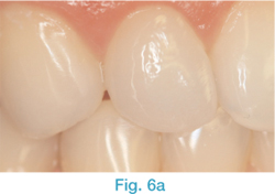 Because of the precision of the mill, the restorations could be designed ideally to a minimal thickness in areas of less than 200 microns. The restorations were bonded without the need of anesthetic, since no tooth structure was removed. (Fig. 6a, 6b & 6c)