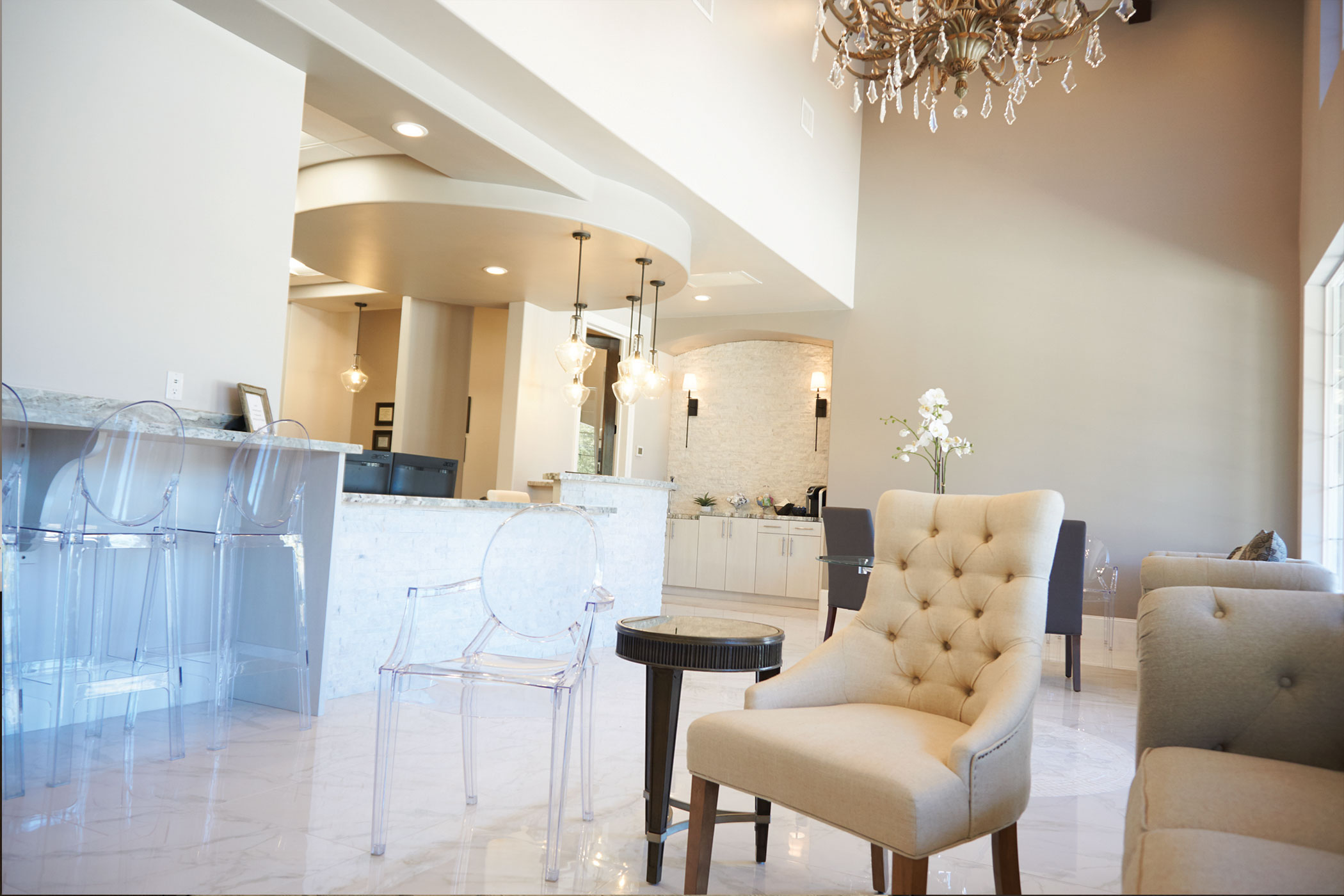 High-End Design Surpasses Patient Expectations To meet the high expectations of his clientele, the doctor invested in the downtown site, which is on a leafy street in the heart of the village. He incorporated high-end finishes, along with equipment that would assist him and his team to maximize productivity while wrapping their patients in a positive, upscale ambiance.