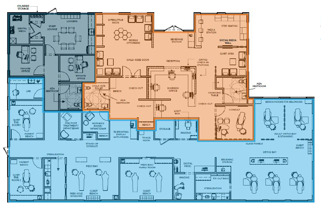 Delivering an exceptional patient experience is a key factor in differentiating one practice from another. As the dentist is often the practice owner, they must wear the hat of a salesperson to draw in and retain patients. In orthodontic and pediatric practices, the practice must consider the needs of both the patient and the parent or caretaker. Through the concept of human-centered design, we can achieve a design that balances the need of both the staff, patients receiving care, and accompanying guests.
