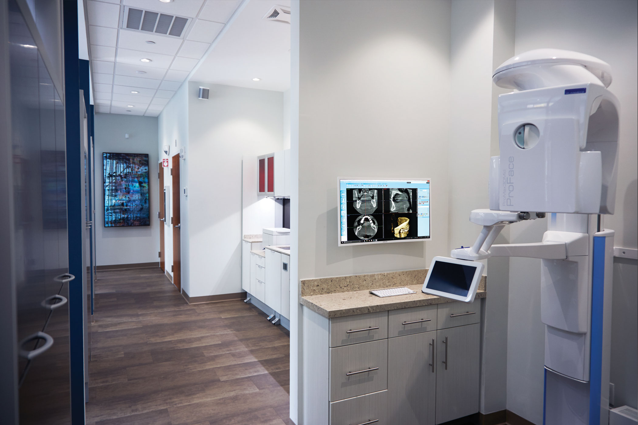 To deliver cutting-edge diagnostics, the doctor chose a suite of X-ray products that are comfortable for patients and provide superior imaging, including the ProMax 3D Mid Cone Beam by Planmeca and Midmark ClearVision sensors. Because the sensors use a short USB connector, there are no long cords snaking through the operatories, which is another benefit. The doctor chose the Planmeca CBCT for its functionality across specialties, its low-dose radiation, and its unique ability to take extraoral bitewings. Digital impressions are captured by a3Shape TRIOS 3 Scanner, and all of the imaging technology is integrated and managed through Planmeca Romexis software.