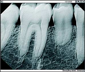 First, there's the critical matter of diagnostic capability. I don't care what other dentists might say who are still trying to convince themselves they should stick with film technology, you can improve your diagnostic capability significantly using digital radiography. With digital, you're looking at an image that fills a 19-inch computer screen and not a film image the size of a postage stamp. Using the software-based digital radiography's image enhancement functions such as magnification, brightness control, and heightened contrast, you can bring out aspects of the X-ray that simply aren't visible on film, including such things as tiny fractures and imperfections that you might very well miss on film. Once you begin to practice using magnification for vision, you wouldn’t practice without it. It’s the same with the digital x-rays.